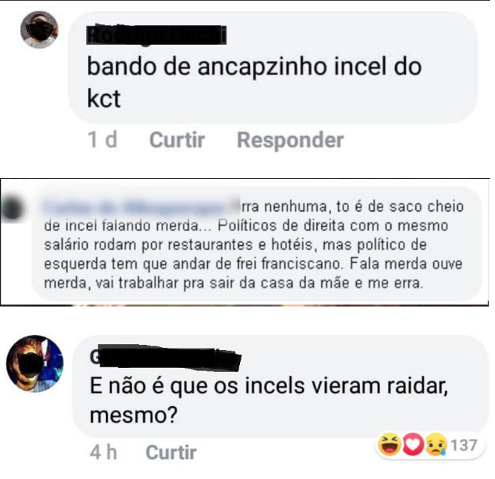 O exemplo pode ser visto abaixo. Os xingamentos são em grande parte feitos por pessoas LGBTQIZ+, que tiveram sua identidade preservada para evitar represálias.